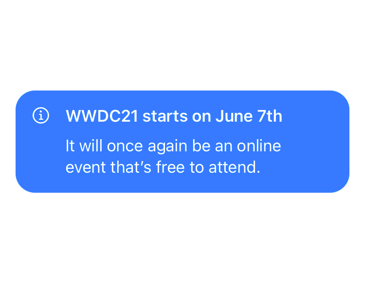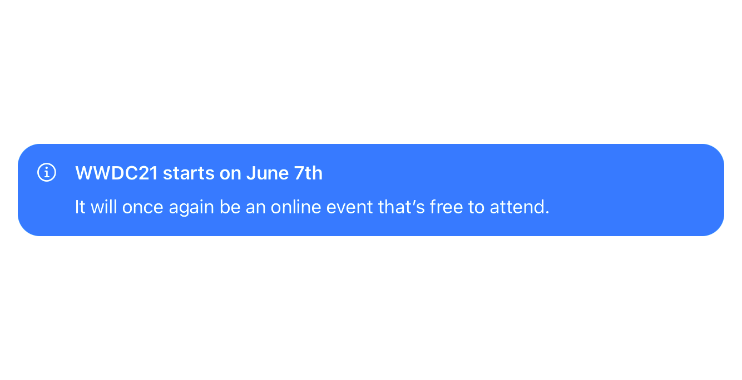 }One way to fix that problem would be to use a Spacer to fill out the remaining horizontal space — which would effectively make our InfoView always render across the full width of its container. However, while spacers are truly an essential part of SwiftUI’s layout system, in this case, adding a Spacer to our view could actually end up breaking its portrait layout — since spacers always occupy a minimum amount of space by default, and since our HStack applies 15 points of spacing between each of its elements: